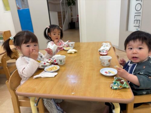 朝のおやつはサッポロポテトでした🙌ペロリと食べ終わるとお皿を指差しておかわりのお願いをしていました🤭