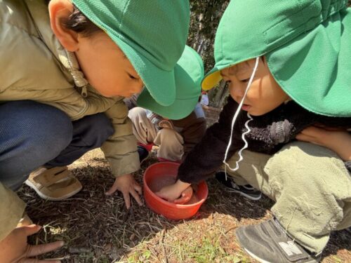ミミズとダンゴムシを見つけることができました🙌捕まえた虫は「見せて見せて‼️」とみんなで鑑賞会でした👀