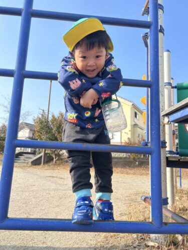 遊具で遊ぶ子や保育者とかくれんぼをして隠れている子がいました👀