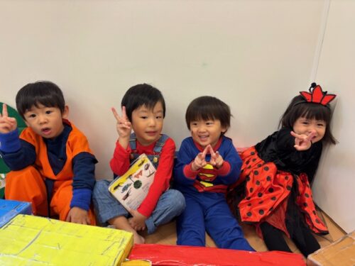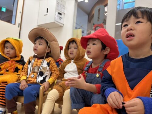 ひよこ組のお部屋に集まって、おばけなんてないさのお歌を歌ったり、ハロウィンの絵本を見たり、作ったハロウィンバッグを見せ合ったりしました👻