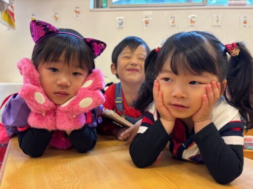 朝からお友だちの仮装に興味津々でした![]()