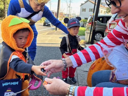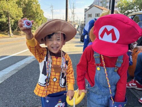 そして、ハロウィンバッグを持って、お菓子をもらいにお散歩へ出掛けました🍩🍬「トリックオアトリート!」とみんな上手に言っていました![]()