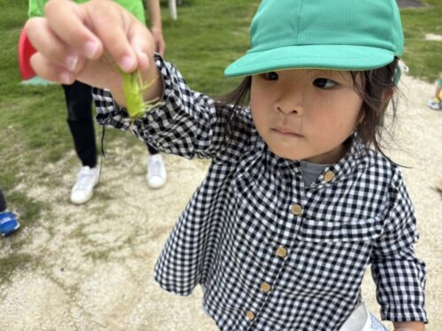 トノサマバッタを捕まえました🙌「先生見て❗️」と慎重に見せてくれました☺️