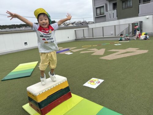 公園から帰ったら屋上で運動会の練習です💪うさぎ組みんなが大好きな虫になりきって様々なお題をクリアしていきます👀ちょうちょになって跳び箱をジャンプしたり🦋