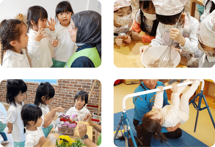 幼児期の保育は、人間形成において土台作りの重要な時期です。私たちは様々な体験プログラムを通じて人間形成を基盤とした「自主性」「社会性」「創造性」を身につけられるよう取り組んでいます。