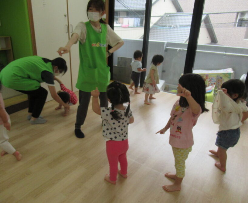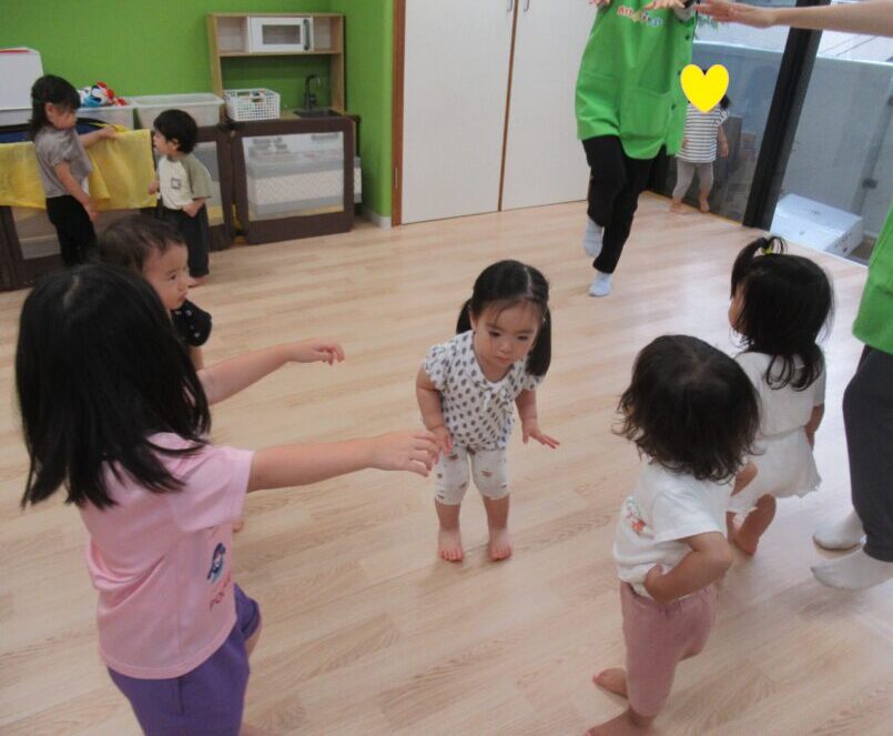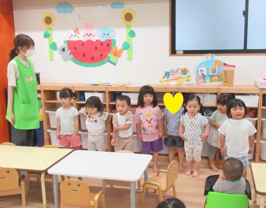 2歳児さんは、オープニングに向けて挨拶の練習しています。