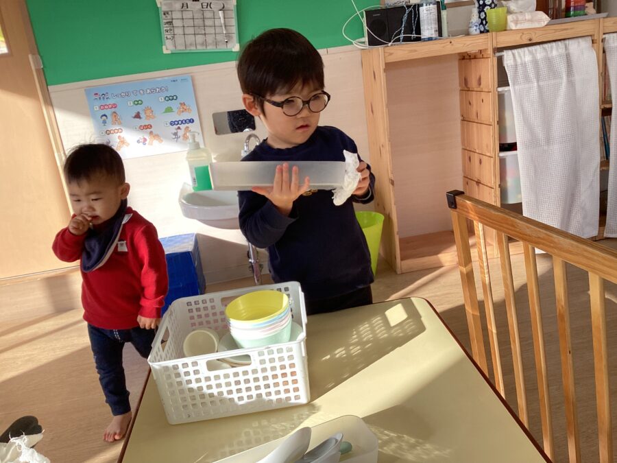 一緒に遊んだおもちゃや椅子、床などを一緒に掃除してくれました🧽