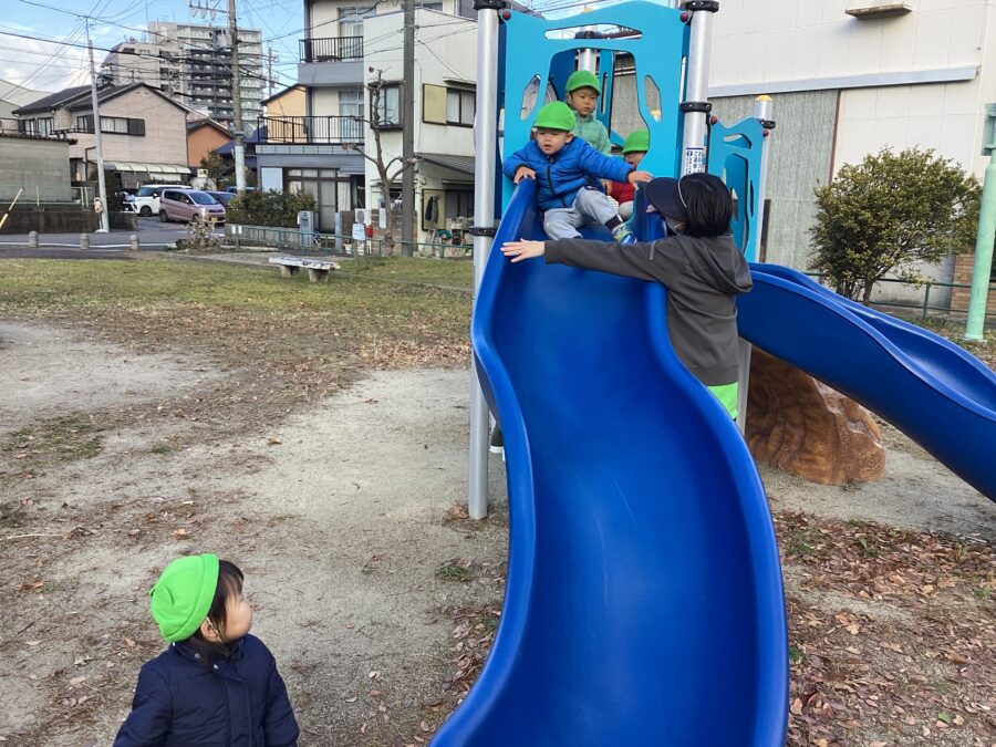 みんな滑り台やブランコを見つけて「わぁー!」「やったー✨」と大興奮でした!