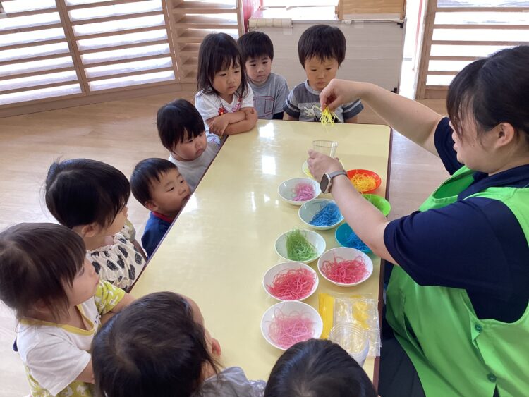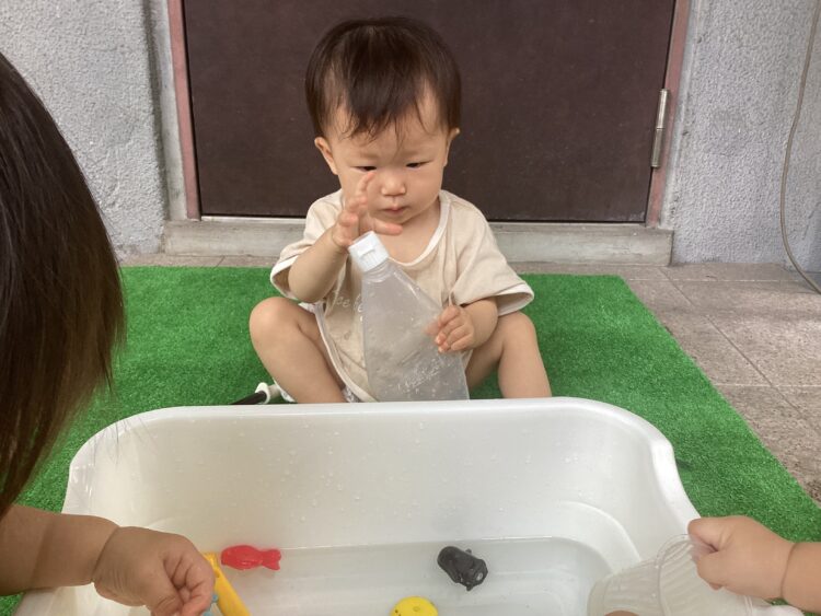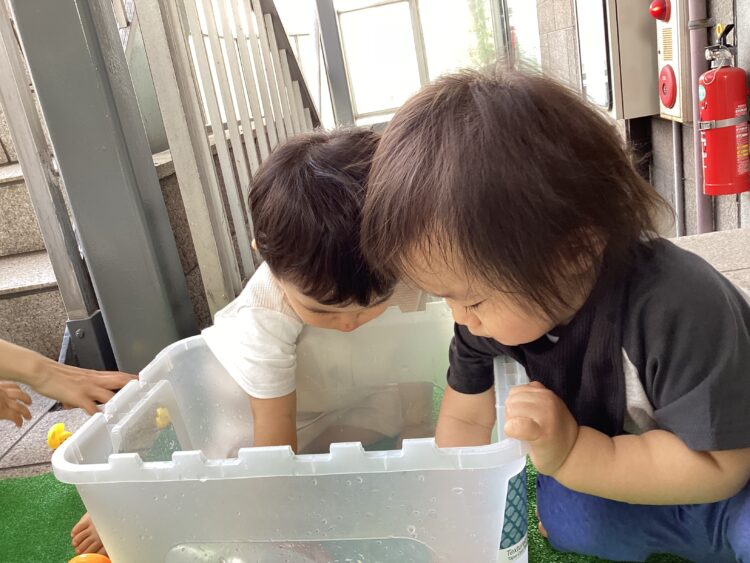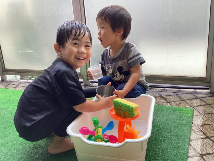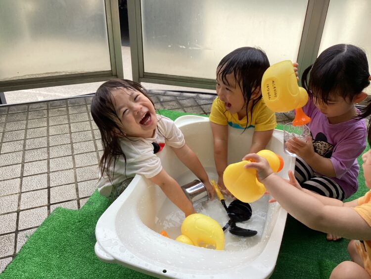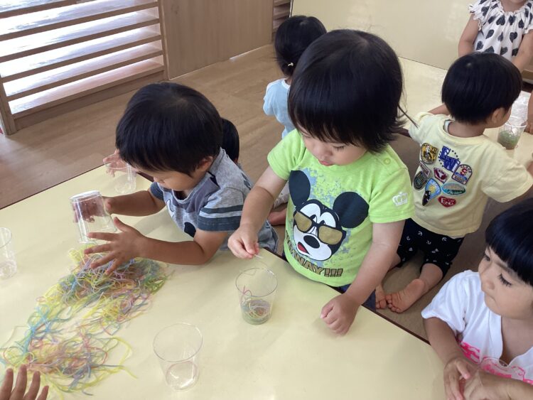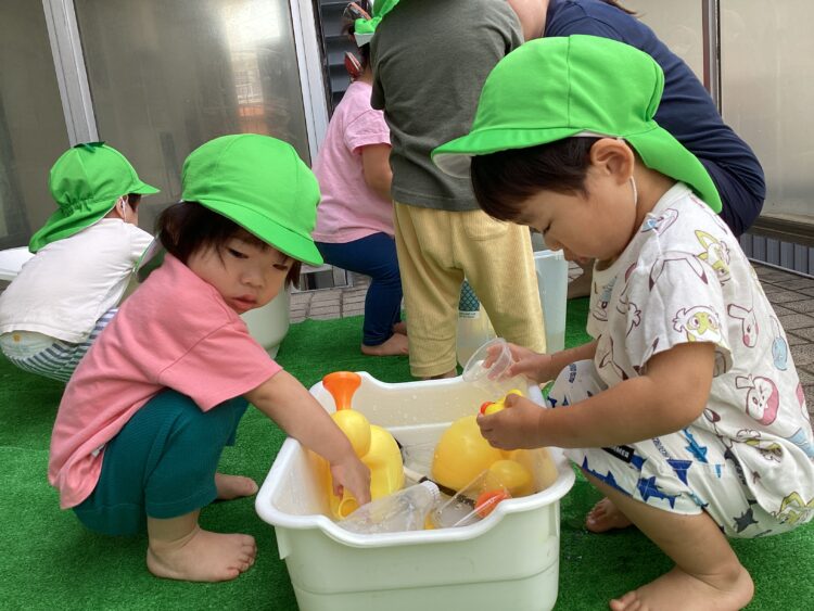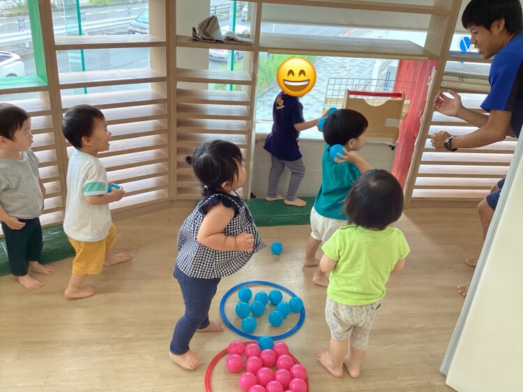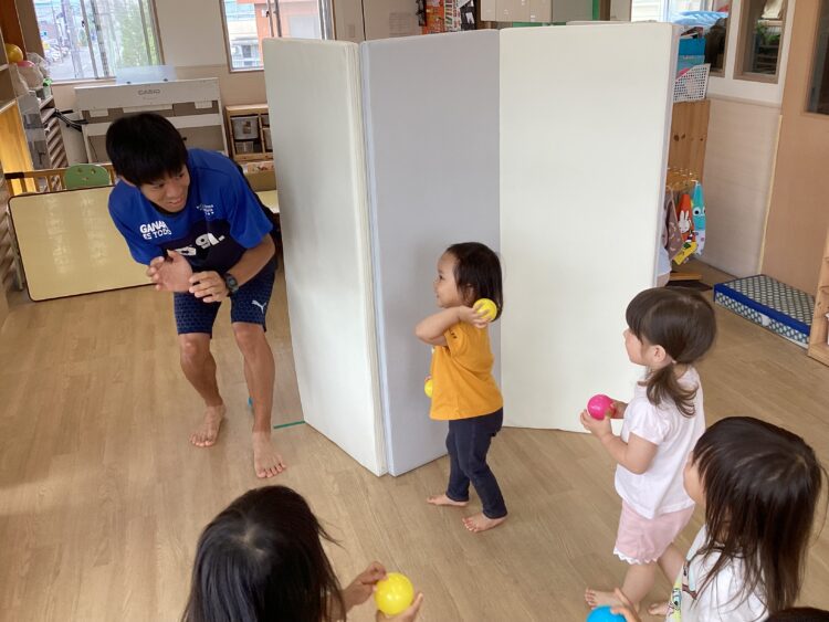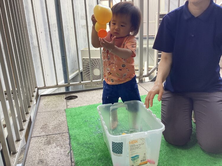 水風船は感触が気持ちよくて、にぎにぎして楽しむお友だちが沢山いました😄にぎにぎしすぎて、割れることもありましたが、それもまた楽しくて、みんなで大きな声で笑い合っていました😆