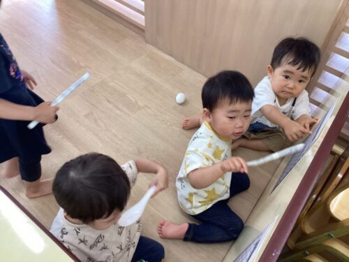 保育者が準備をしていると興味津々で「なにしてるのー?」と聞いていましたよ👂