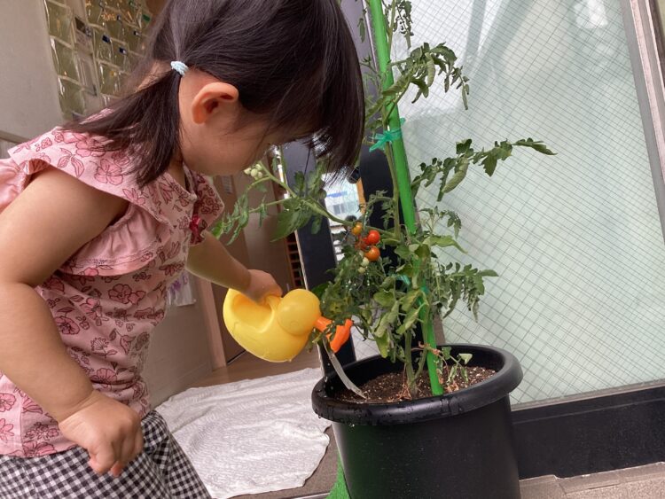 また、園でみんなで育てているミニトマトが赤く色づき、食べ頃に🍅