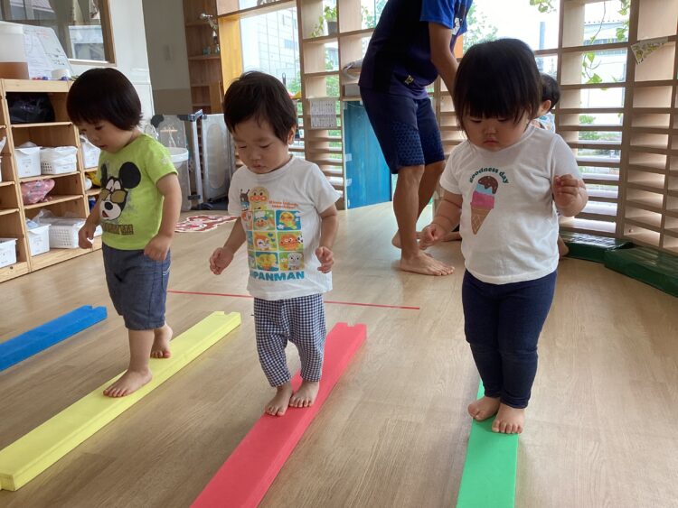 ちゅうりっぷ組さんも平均台を渡りました😄