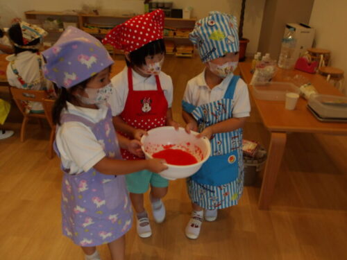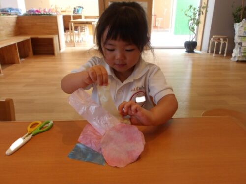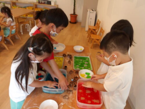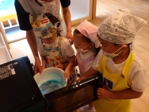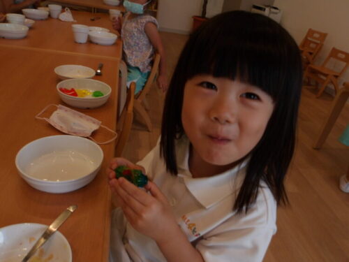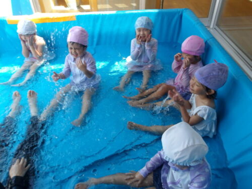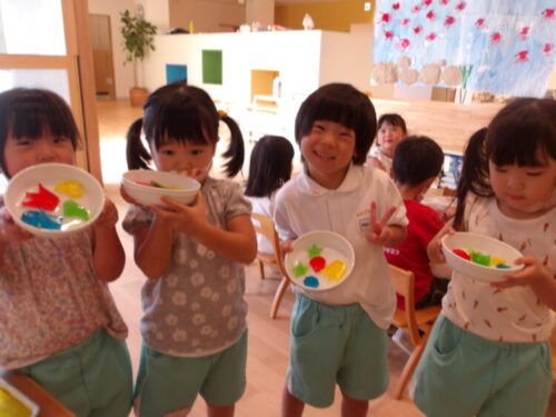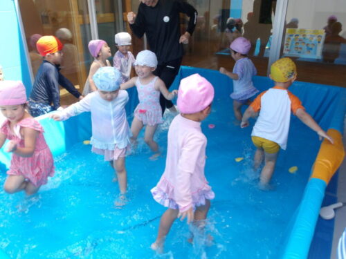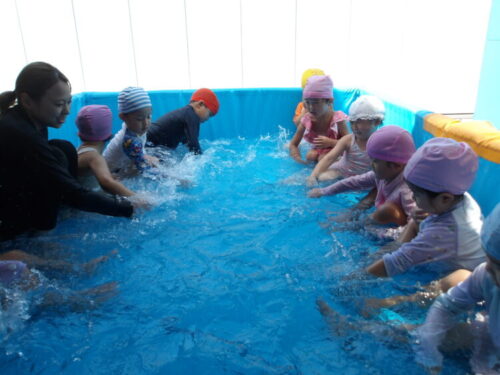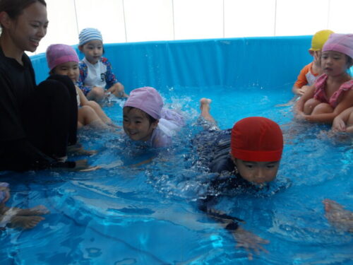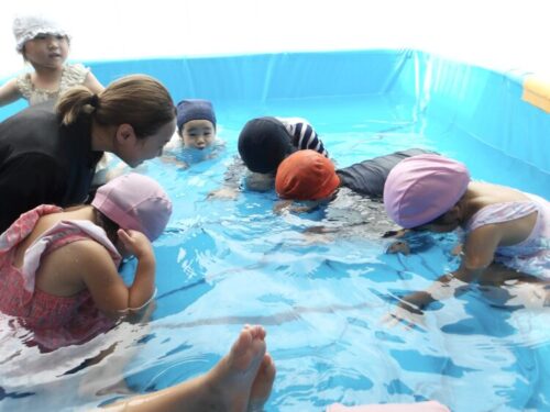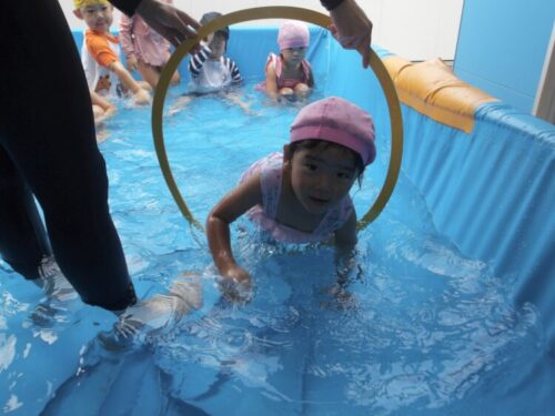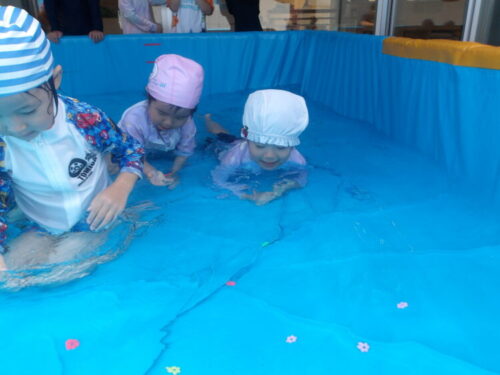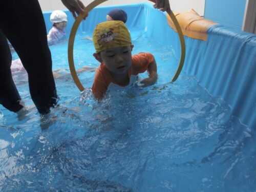 今日は顔をつけて、水の中のおはじきを取ってみようと声をかけると、意識して顔をつけながら取ろうとしている子も中にいましたよ