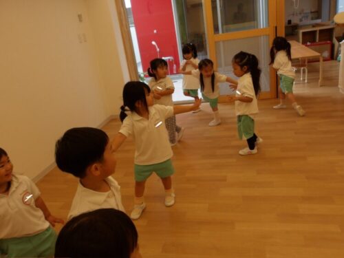 今日もピアノの音を聞いて止まったり動いたりのリズム遊びではそれぞれ可愛いポーズやバランスポーズやいろんなポーズで止まっていてみんなで笑い合いながら楽しんでいましたよ😂