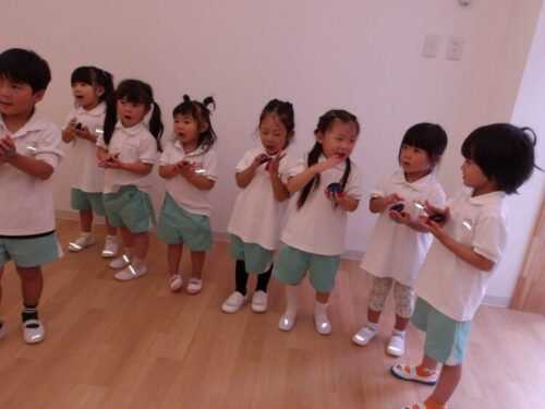 海の歌も日常で練習したので歌いながらカスタネットを叩き、リズム遊びを楽しめました😄