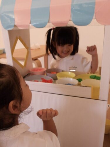 その後の自由遊びではほとんどの子がおままごとコーナーでお店屋さんさったりお医者さんごっこやったりとお友達と関わって仲良く過ごしていましたよ😄