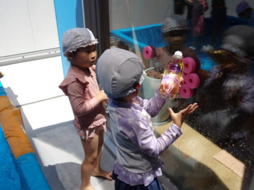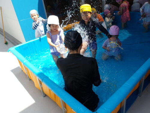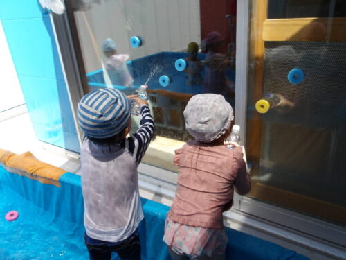 保育者とも水を掛け合って楽しく遊びました😁