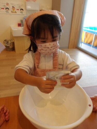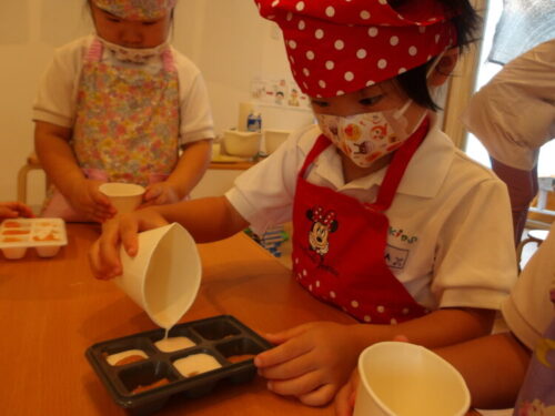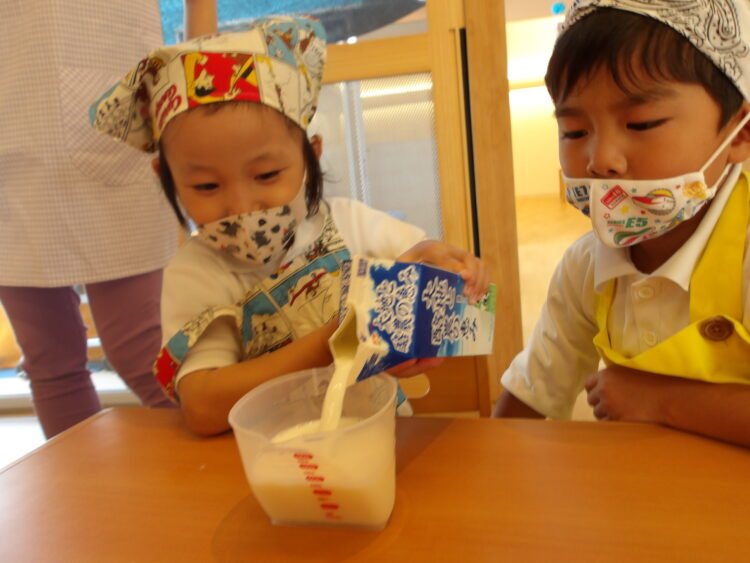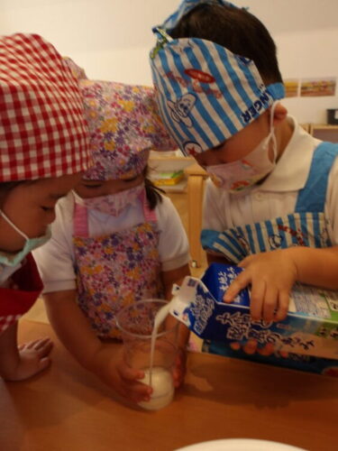 元になる粉→牛乳とグループで順番に入れていきました😄