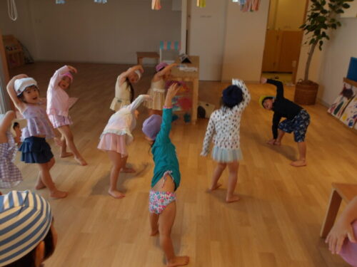水遊びでは年長さんが前に出て準備体操をしてくれました🎶