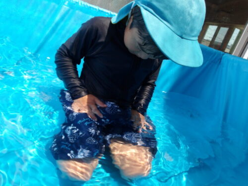 プールではズボンに空気が入って膨らませることを知り楽しんでいましたよ☺️