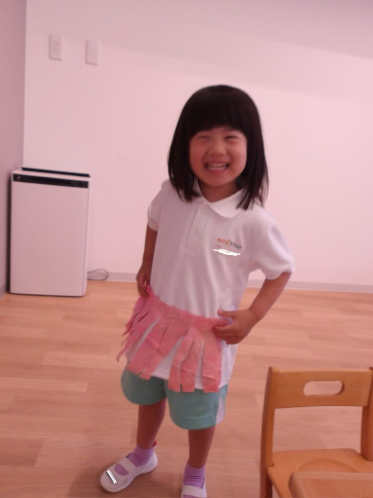 スカートみたい笑と体に当ててみたり、まだやりたいと満足するまでチョキチョキとハサミに夢中の子もいましたよ😄