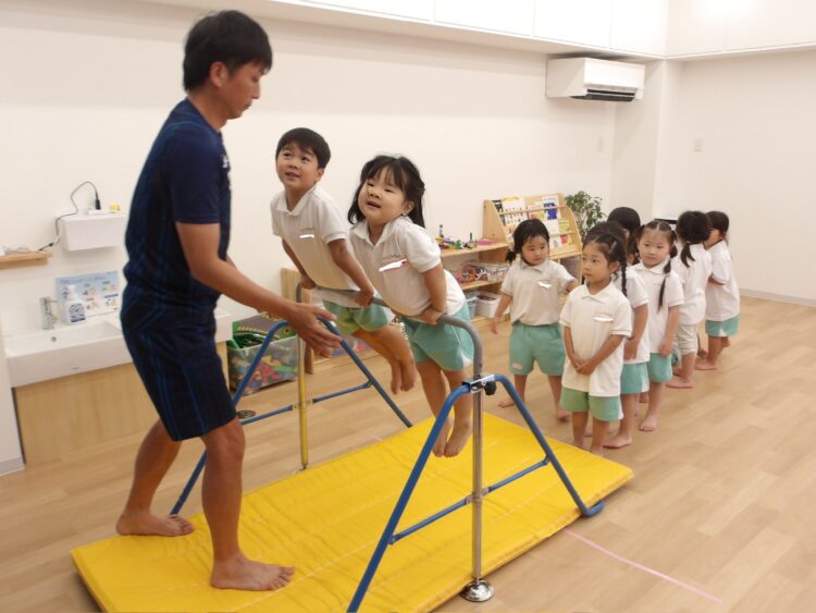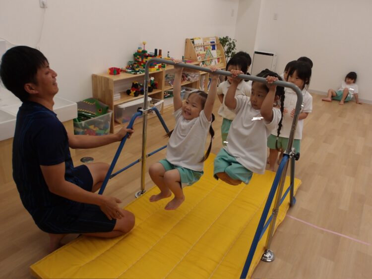 だんだん腕の力もついてきたね!と褒められ子どもたちも自信を持って取り組む姿を見せていました😄