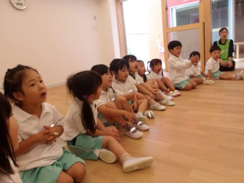 先生からの出し物ではクレヨンの色がなくなってしまうお話でみんなの魔法をもらって色を戻してあげようと、大きな声でえーい!と魔法をかけてくれました😄