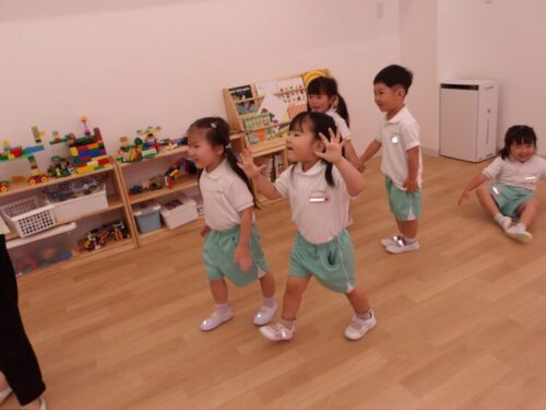 ピアノに合わせて動くリトミックでは止まる時に色んなポーズで止まって楽しんでいましたよ😄