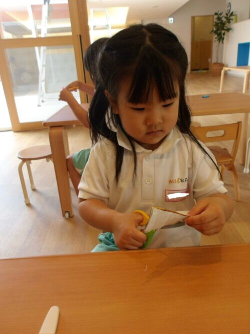興味のあるお友達はやりたいと集まってハサミでチョキチョキ夢中でしたよ😄