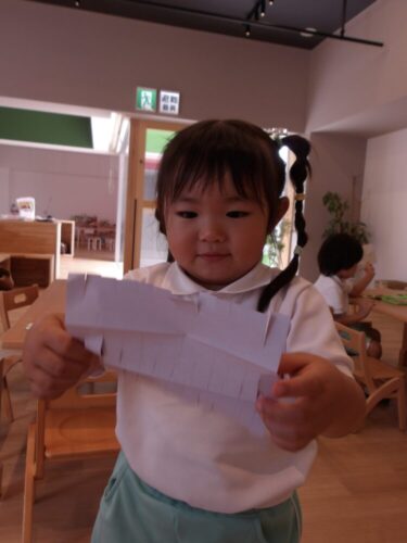 終わってからの自由遊びでは製作コーナーでハサミを使った七夕の飾り作りを取り入れました🎋