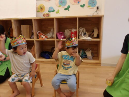 最年少のお友達も王冠やお誕生日カードに興味津々でみんなの前に出てニコニコで顔を見せてくれました😄