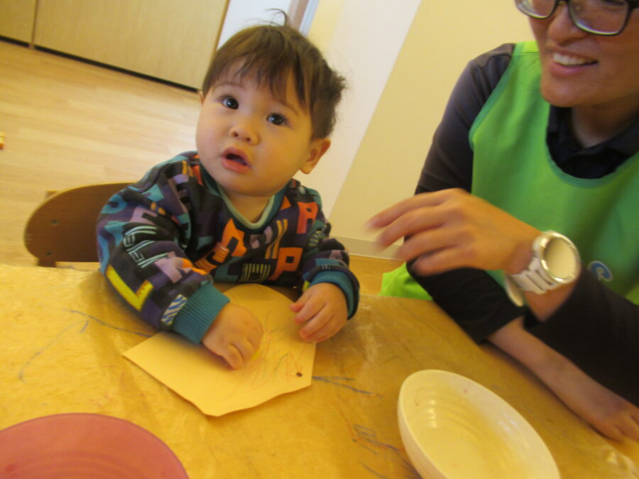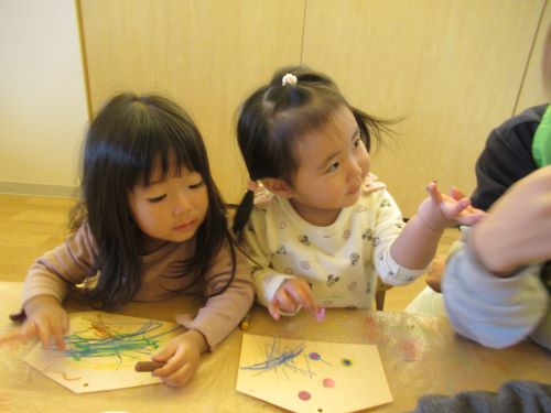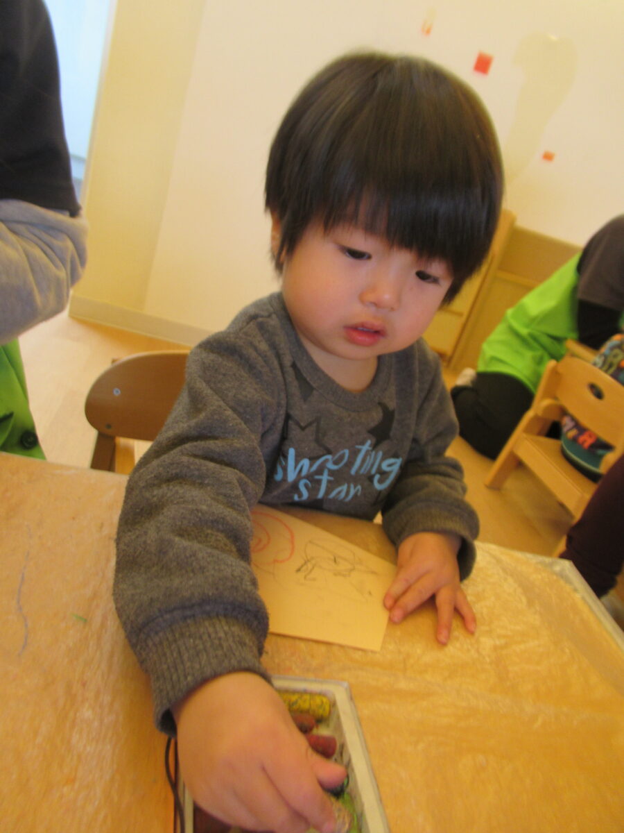 ひよこさんもクレヨンを手に取ると、早速なぐり描きを楽しんでいましたよ🖍