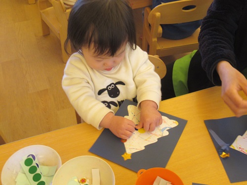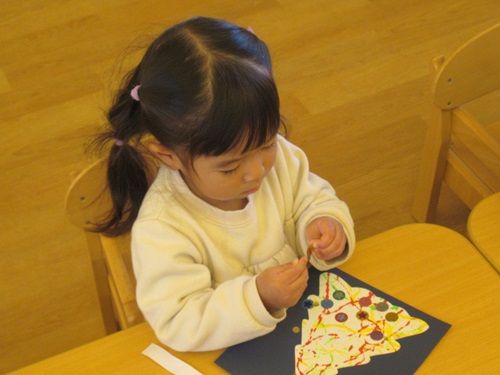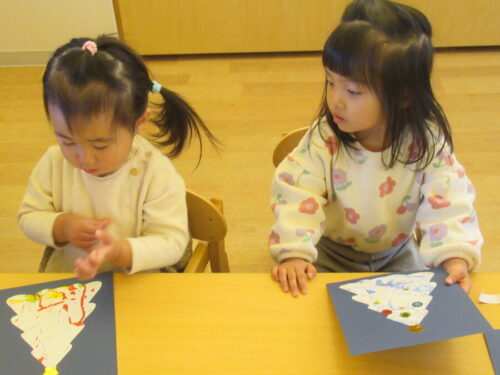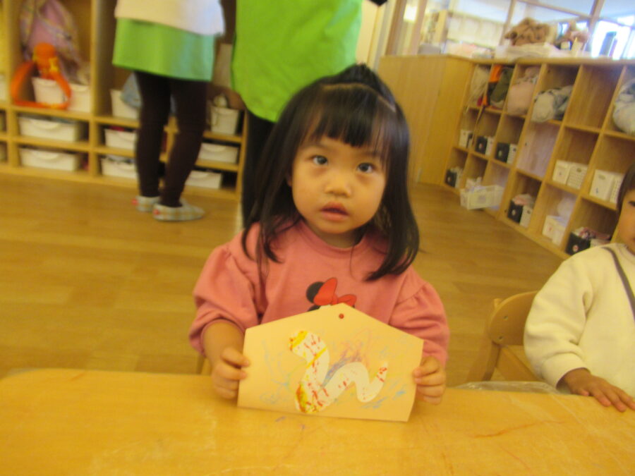 来年はへび年🐍!絵馬に好きな色のクレヨンで色を塗り、シール貼りも楽しみました。