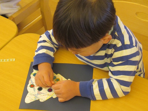 できたら、次はヘビさんの色を選んで、絵馬に貼り付けますよ😀