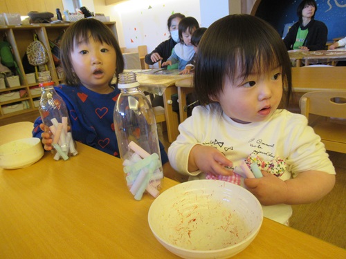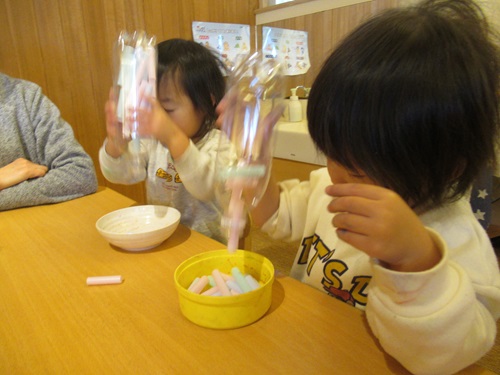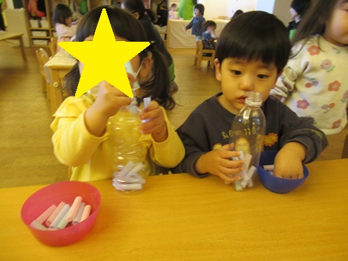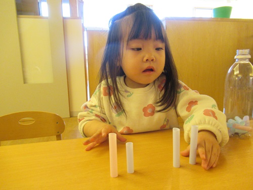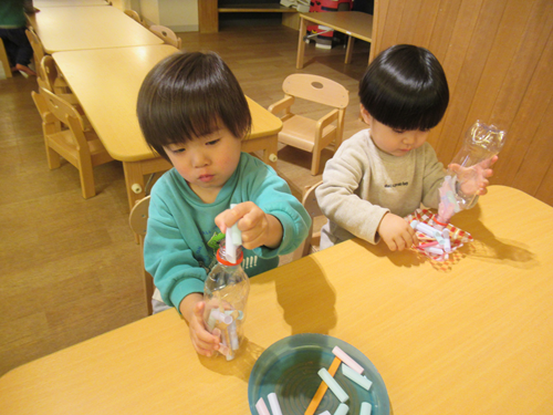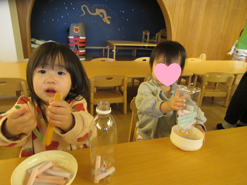 いろいろな太さのストロー、アイスの棒を長時間集中して行っていましたよ🌟