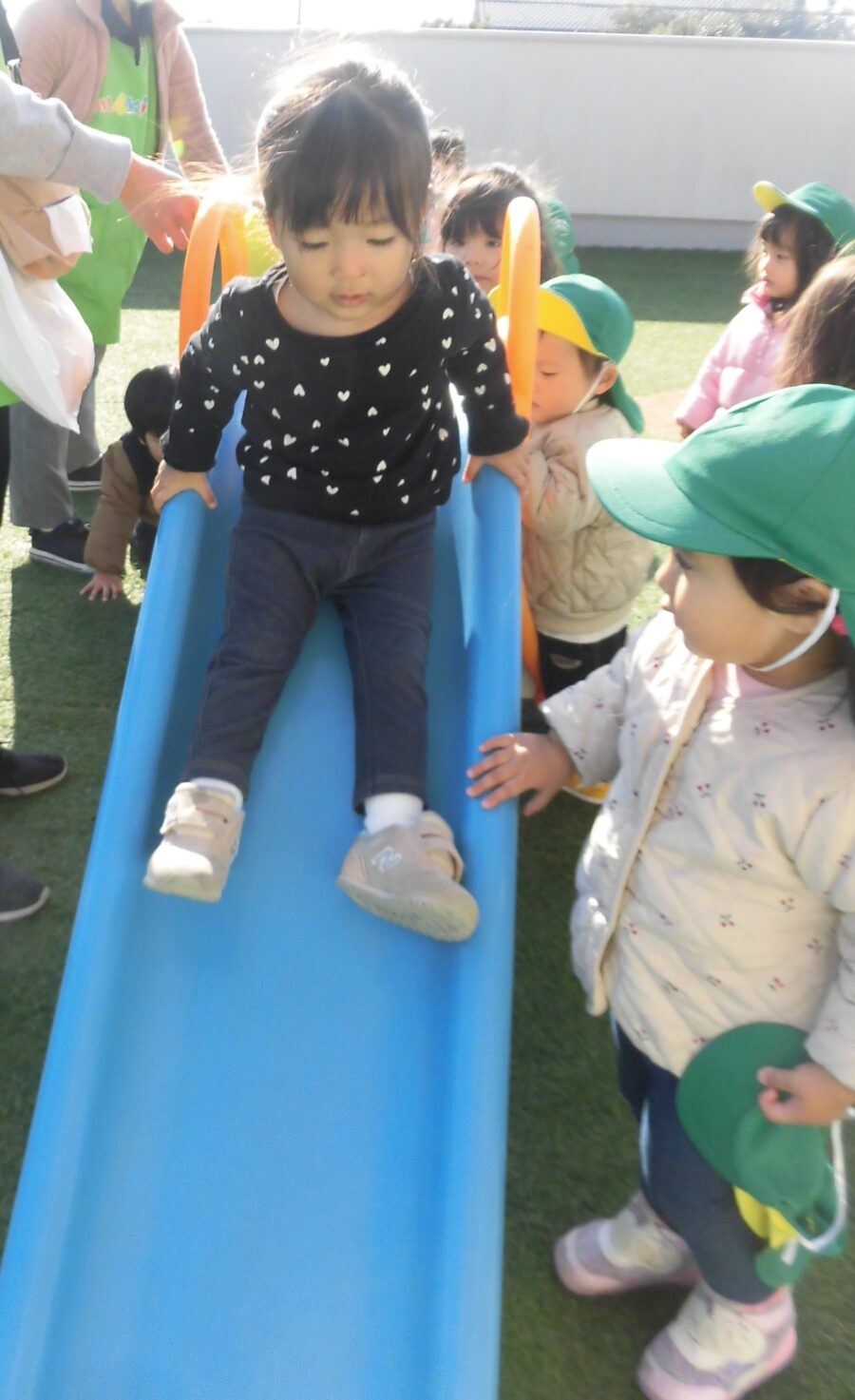 すべり台は「じゅんばん、じゅんばん!」と自分たちで声を掛け合って滑っていましたよ✨