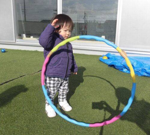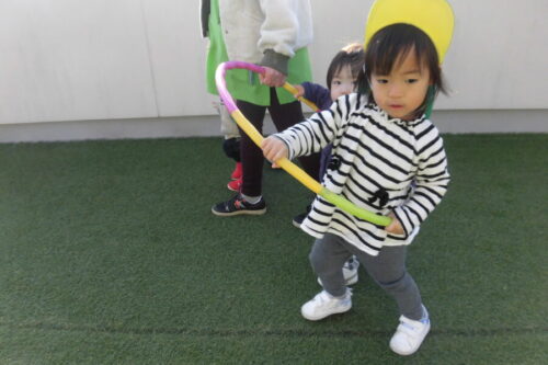フラフープで電車ごっこを異年齢で遊んでいる様子も😊💖