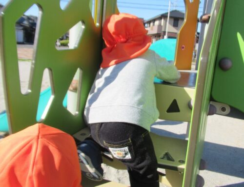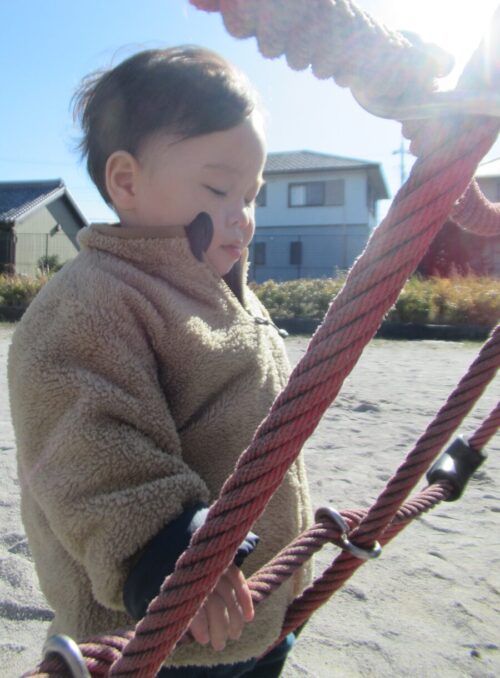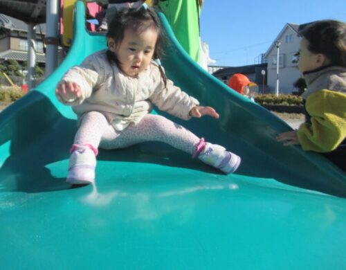 公園の滑り台では、両手でバランスをとって上手に滑ることができました🎵
