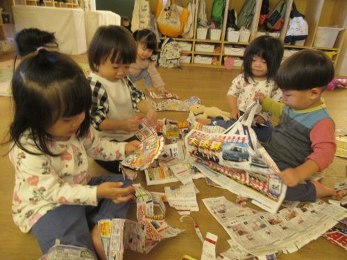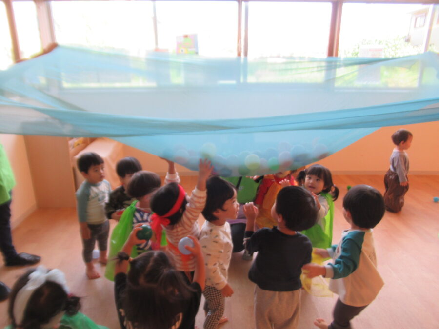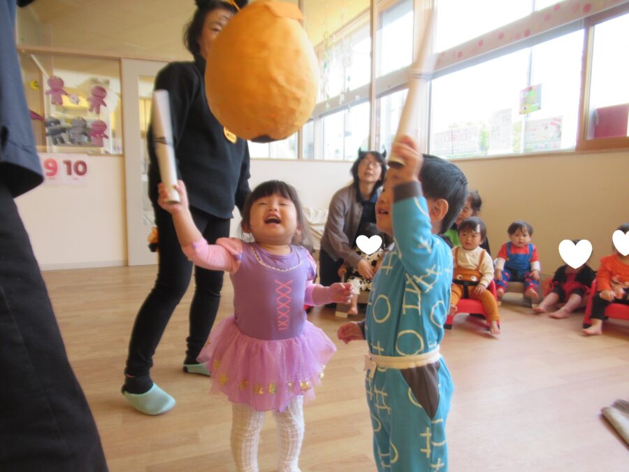 ピニャータ割りを行いました!はじめはみんな「?」な表情で見ていましたが、遊び方が分かると「やりたい!!」どんどん前に出てきてくれました✨とっても楽しそうでした😄