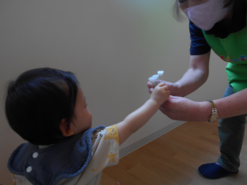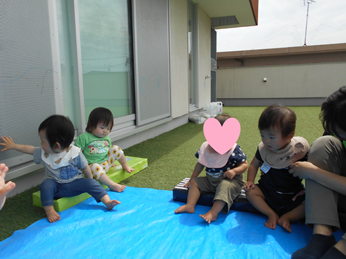 お部屋に戻ってからは、水遊びのおもちゃやぞうさんジョウロで遊びました☺