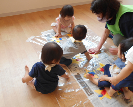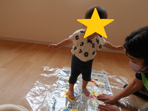 このお友だちは全身を使ってペインティングです。