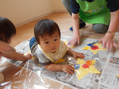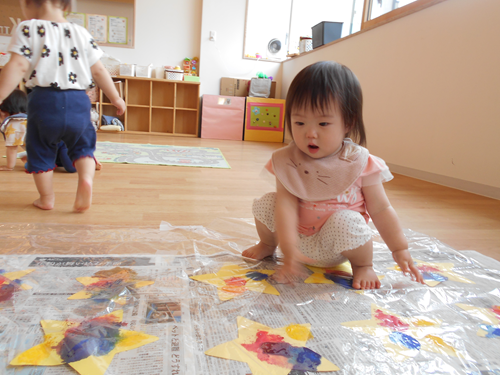 先生がお星様に色を付けてるよ~!何をするのかな~??と