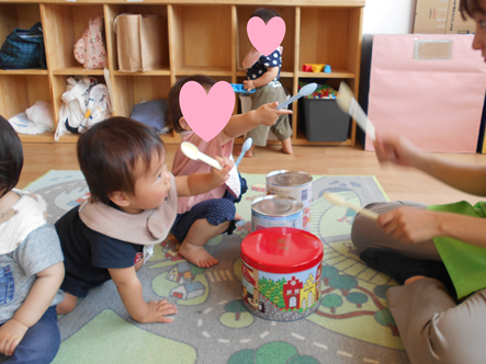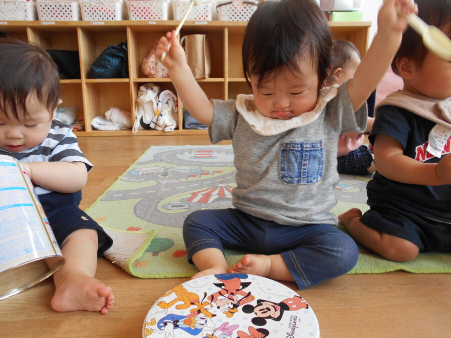 手やスプーンのバチをつかって“トントン”“カンカン”🥁
