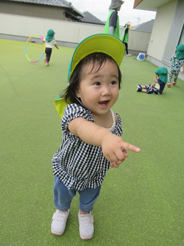 外に出ると、飛行機が飛んでいるのを見つけて指差しして教えてくれたり、みんなで手を振っています✈「あっちに行っちゃったよ!」と飛行機が見えなくなっても、飛行機が気になる様子のお友だち😀