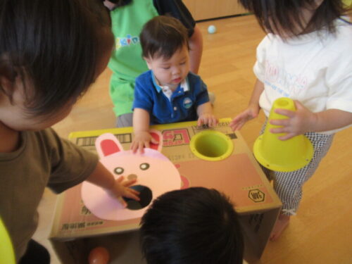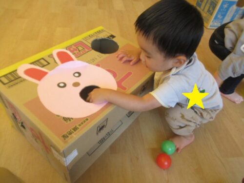 ボールを入れて下から取り出して、繰り返して楽しんでいる様子がありました✨