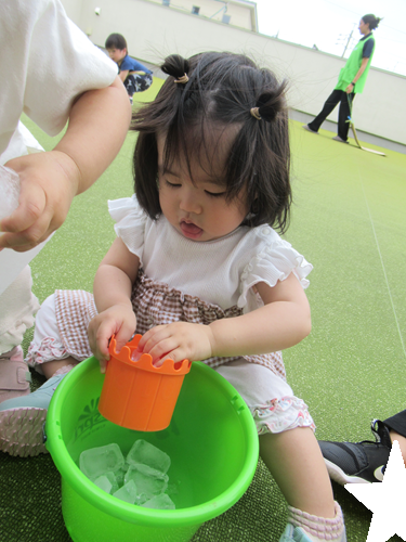 指で上手に氷をつまんで、カップに入れていました✨