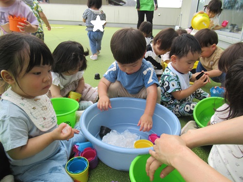 氷が登場すると、みんな一目散に走って来てくれました!氷があるのを見つけて、指でつまもうとしたり、手で握って気持ちよさそうにしていましたよ😄✨