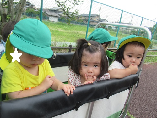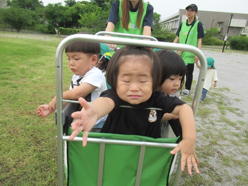 いつも座るカートに乗っていたお友だちが、今日は立ってお散歩するカートに乗ることができました✨