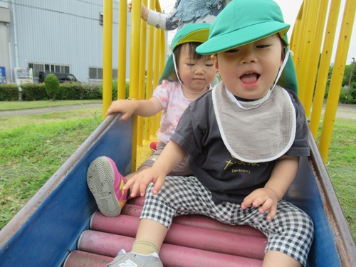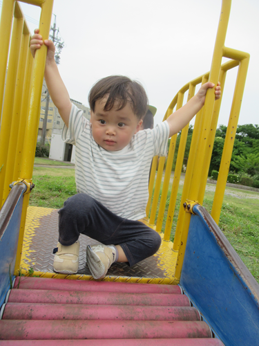 一回目滑り終わったときはキョトンとした表情でしたが「もう一回やる?」と聞くと、楽しかったようで、もう一度滑り台に挑戦しに来てくれましたよ✨