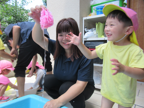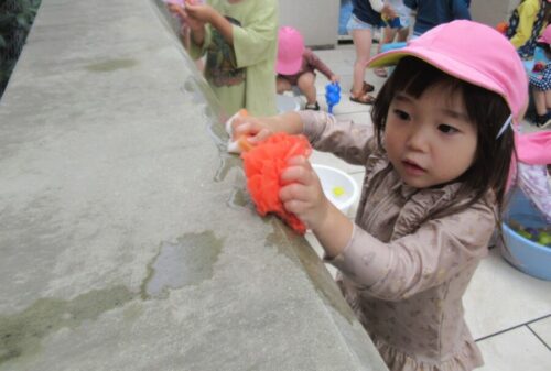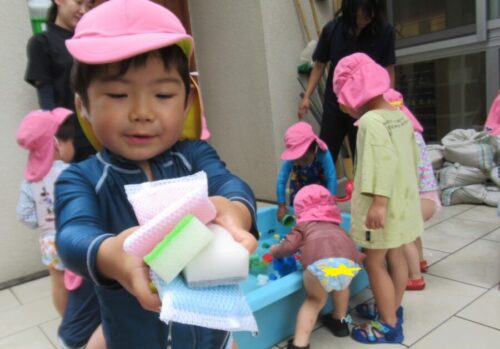 今日から「スポンジ」が登場し、「あ!!なんかある!!」「なにこれー!!」と水を含んだスポンジの感触に大興奮でした💖